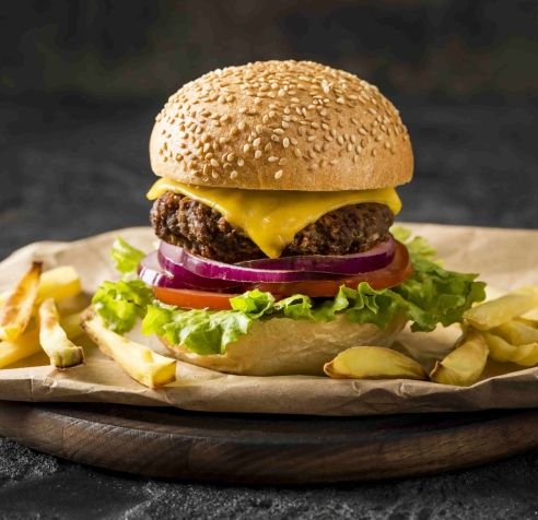 160Gr El Yapımı Burger Eti, Mantar, Çedar Peyniri , Özel Sos, Marul, Kornişon Turşu , Domates Karamelize Soğan , Parmak Patates